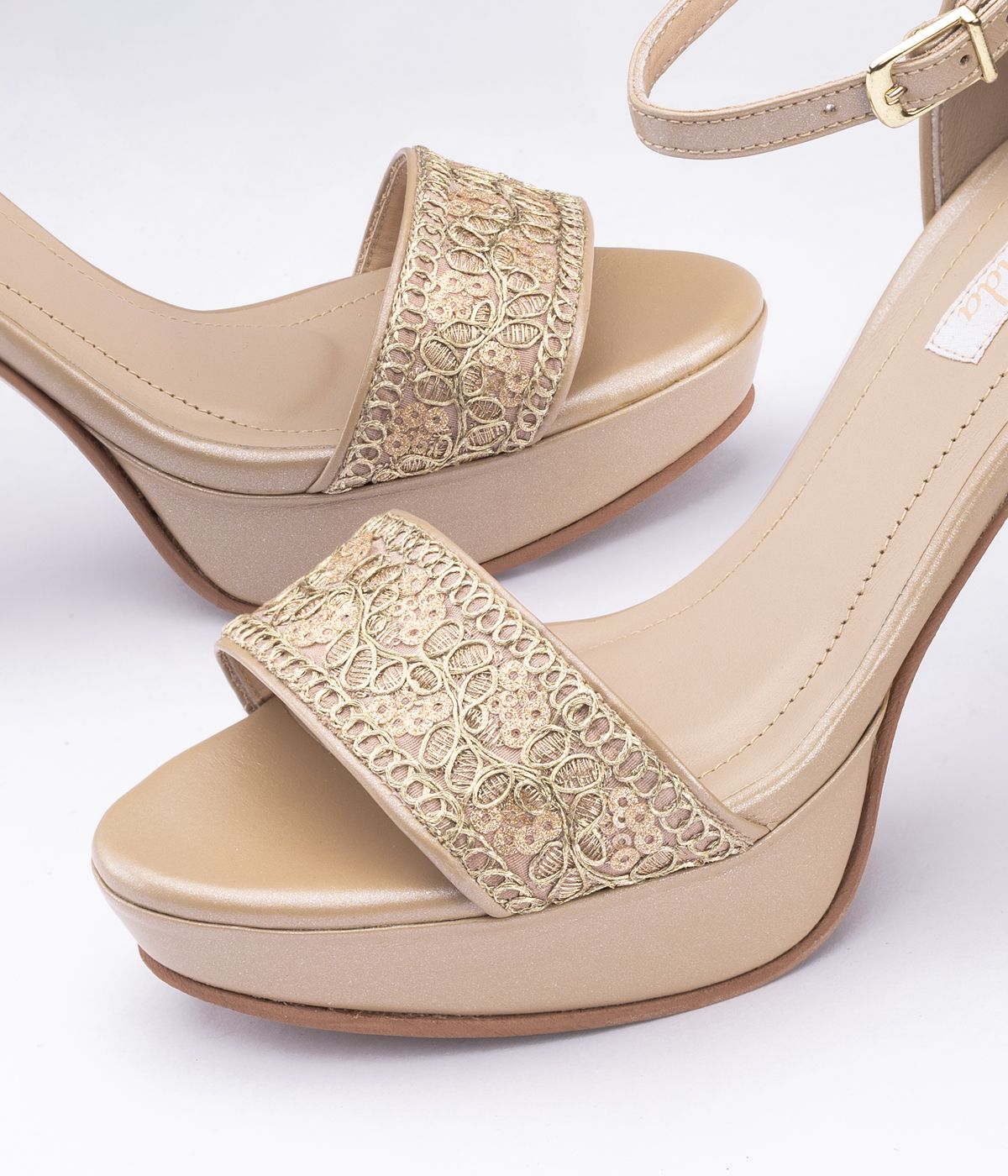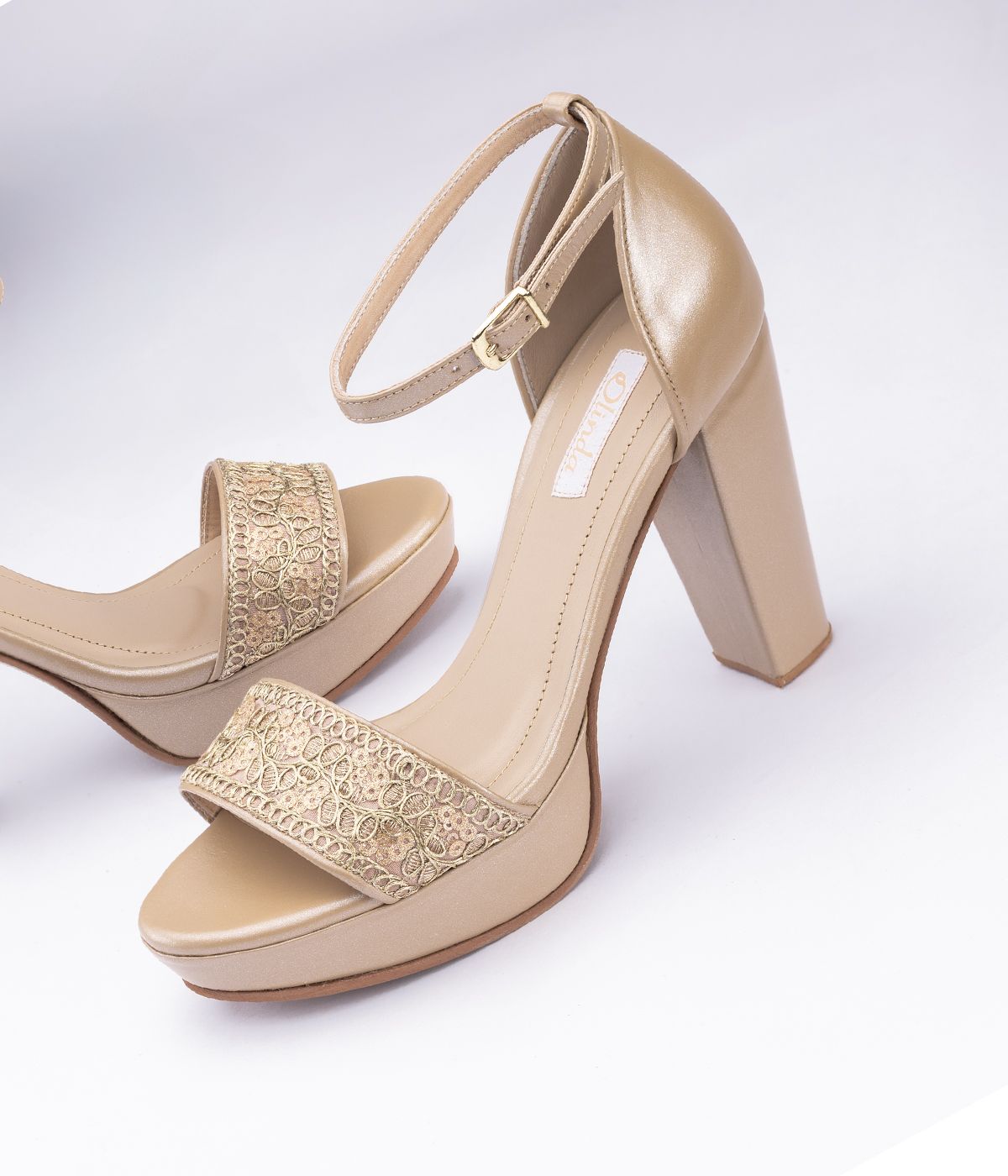 Elaborada en cuero nude con detalles de encaje que capturan elegancia y movimiento, presenta una plataforma generosa que brinda comodidad y estabilidad. Equipada con un taco de 11 cm robusto que proporciona altura dramática y presencia, se asegura con delicada correa al tobillo mediante hebilla funcional. Su diseño audaz y femenino la convierte en la opción perfecta para momentos que merecen brillo, aportando sofisticación y confianza con un toque de distinción luminosa.