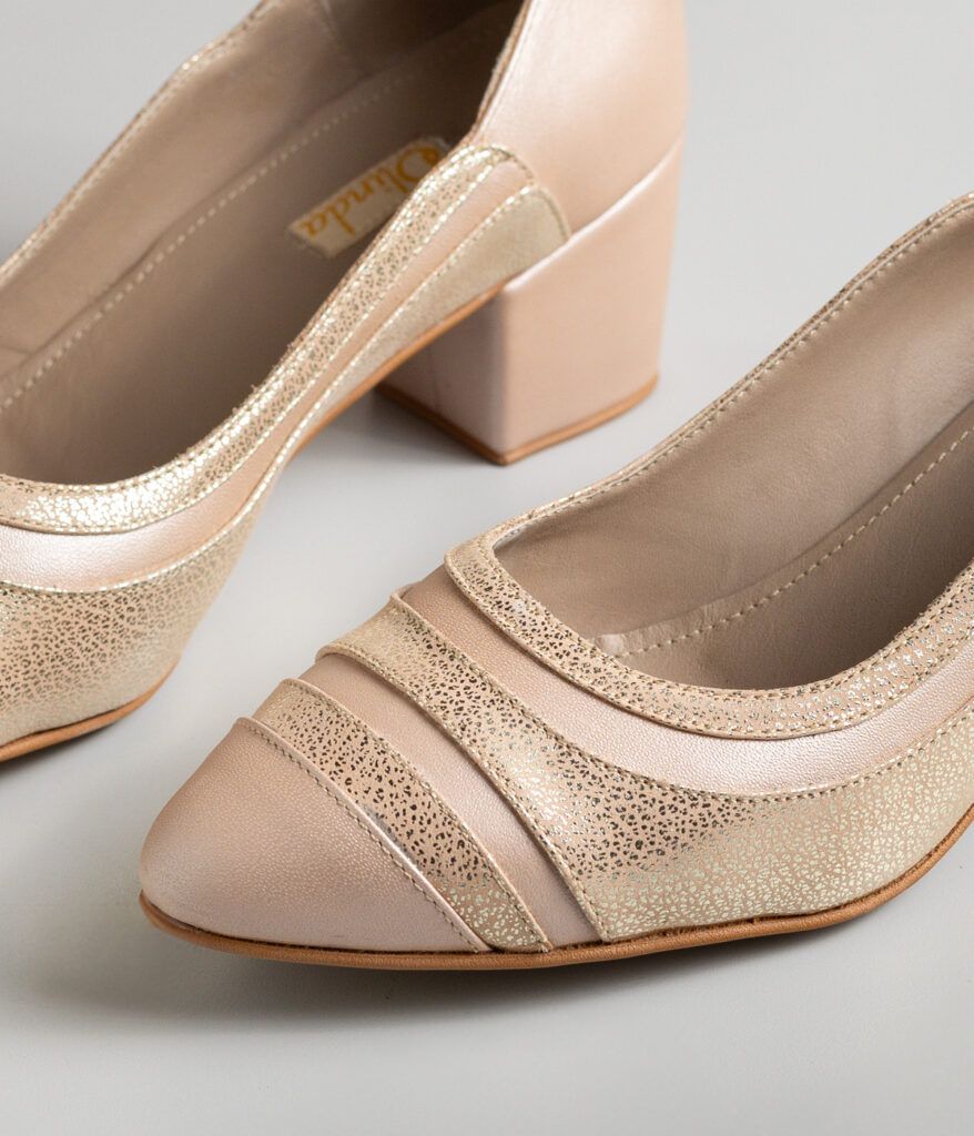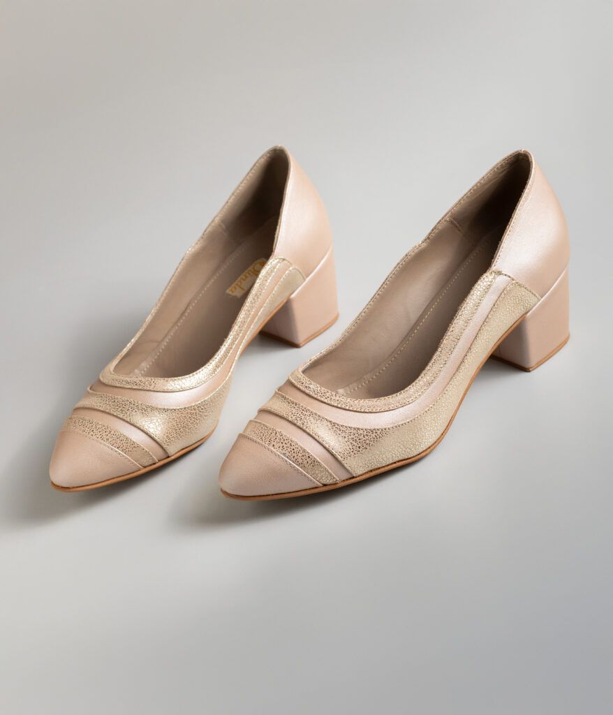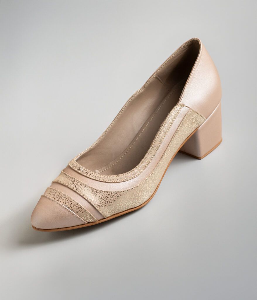 Elaborado en cuero perlado champagne combinado con madona nude, este stiletto cautiva con su juego de texturas y tonalidades sutiles. La punta fina alarga la línea del pie con elegancia minimalista, mientras que el taco de 4 cm grueso proporciona comodidad y estabilidad perfectas para el uso diario. Un diseño versátil y sofisticado que transita sin esfuerzo de la oficina a encuentros informales, aportando ese toque de refinamiento discreto que complementa cualquier guardarropa con naturalidad.
